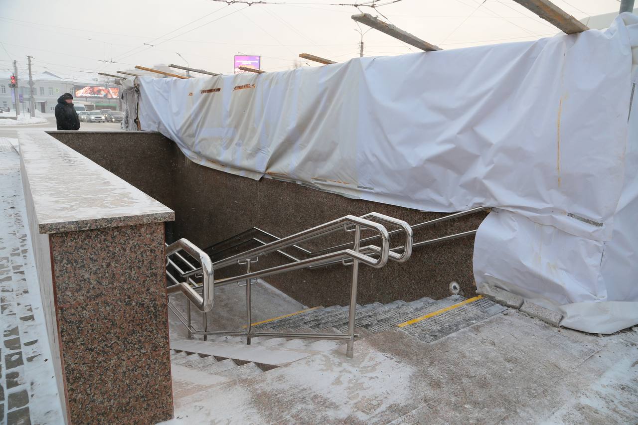 Ремонт перехода на Интернациональной и Герцена продолжается в сильные зимние морозы