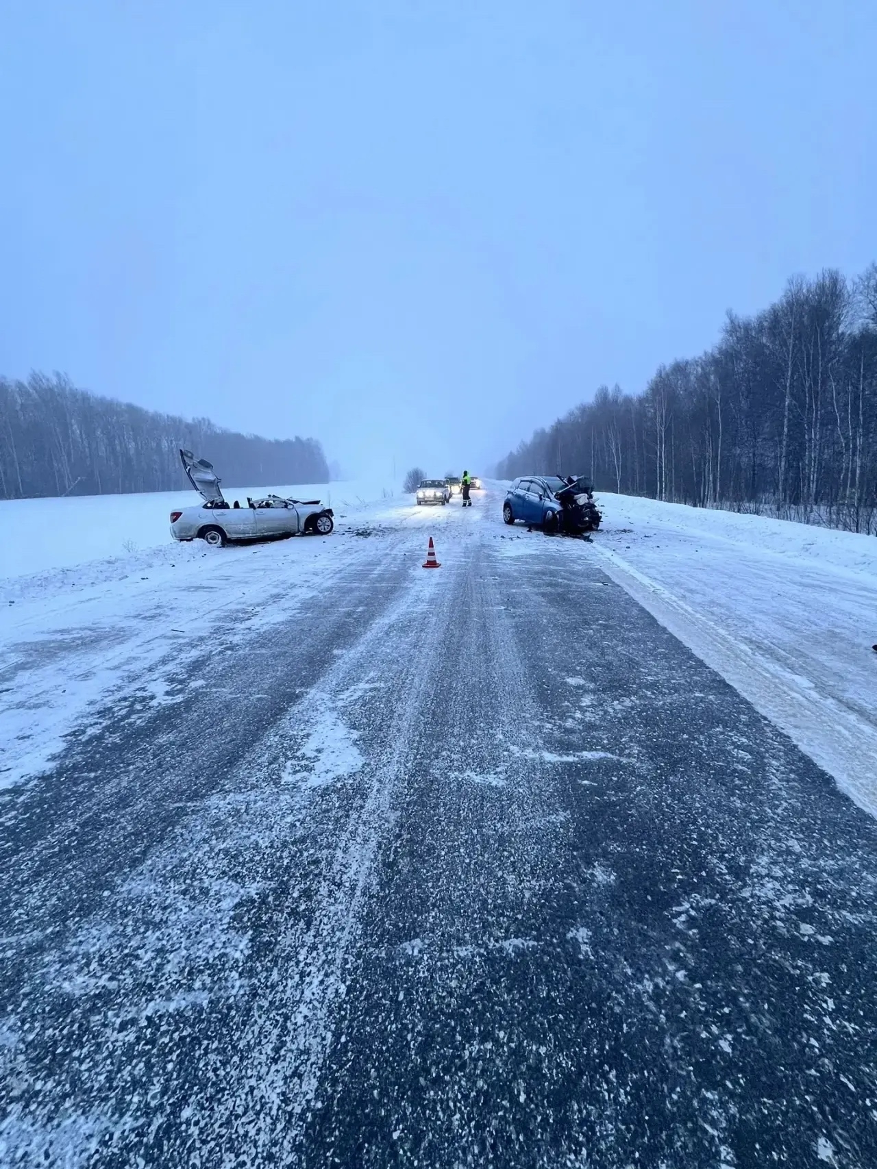По предварительным данным Госавтоинспекции, около пяти часов вечера 50-летняя женщина за рулем «Ниссана» не справилась с управлением на заснеженной дороге. Ее автомобиль выехал на встречную полосу, где столкнулся с «Ладой Грантой», которой управлял 25-летний мужчина. Удар был такой силы, что оба водителя скончались на месте происшествия.